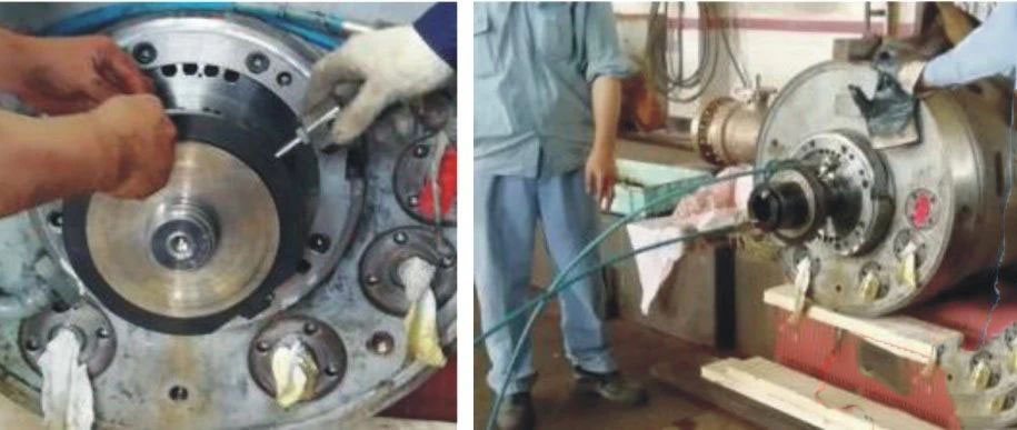 ①拆除前后罩殼,用推軸法測量止推瓦的間隙,即軸竄量;