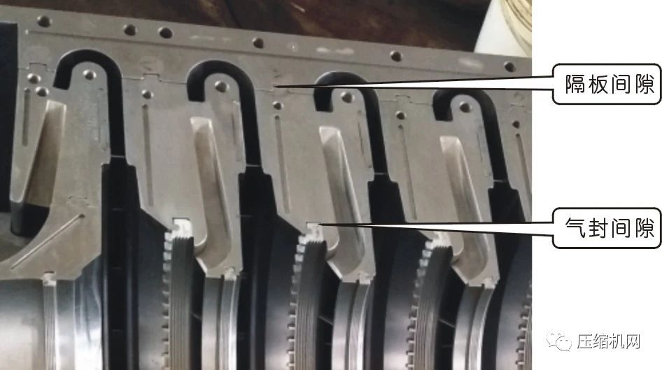 ②隔板的檢查:用塞尺檢查各級隔板定位面間隙,要求間隙符合標準。