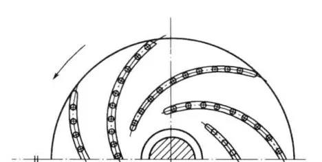 二元輪葉片的形狀常采用單圓弧、雙圓弧、直葉片和空間扭曲葉片。采用單圓弧葉片時,當葉片出口幾何角β2A為60度左右時,可采用直葉式。