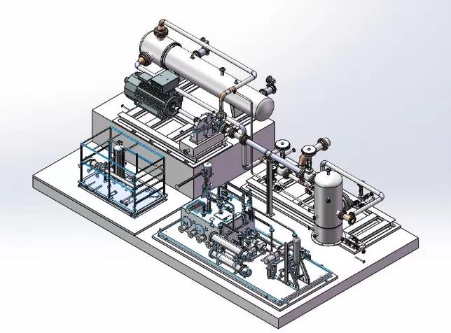 乙烯壓縮機采用半撬裝布置方式,壓縮機和電機直接安裝在底盤上。密封氣盤站安裝在底盤側(cè)面,可以按“運行準備就緒”狀態(tài)發(fā)貨。到達現(xiàn)成后只需調(diào)整撬塊并與混凝土地基固定,然后對中、接管就可以調(diào)試,大大降低安裝成本和時間,并且減少占地面積。
